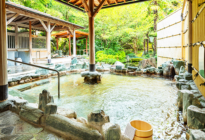 A beautiful caldera lake created by volcanic energy, certified as a Global Geopark. Hot springs can be enjoyed throughout the four seasons, and the long-run fireworks display from April to October creates a fantastic spectacle with lights reflecting on the lake surface. There are also plenty of activities, such as sightseeing cruises and canoeing.